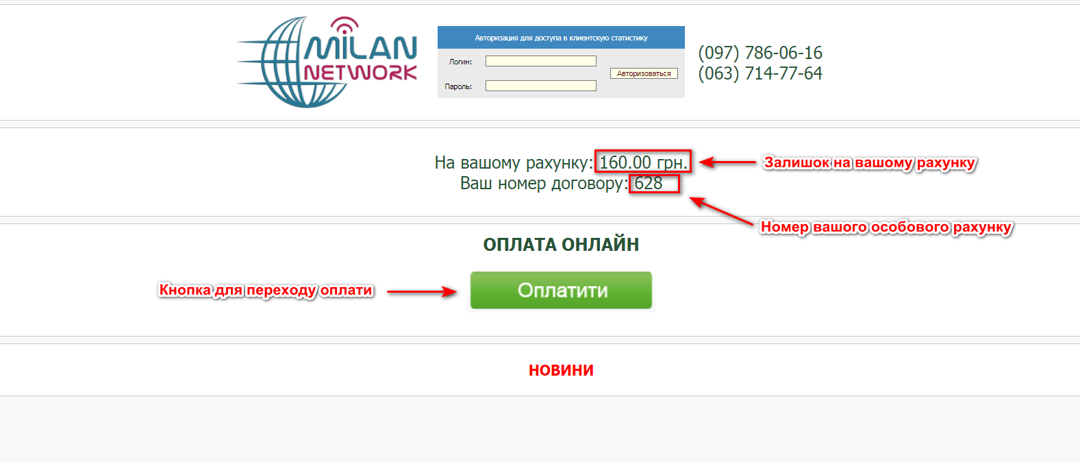 Якщо не виходить, або Ви не бачите кнопки оплати, та іншого, значить Ви зайшли в кабінет НЕ З НАШОГО ІНТЕРНЕТУ,